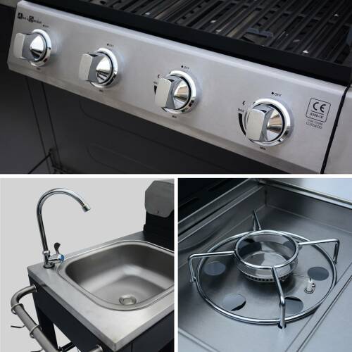 Description – Barbecues gaz – Alice’S Garden – Barbecue au gaz D’Artagnan cuisine extérieure 5 brûleurs évier planche thermomètre ustensiles