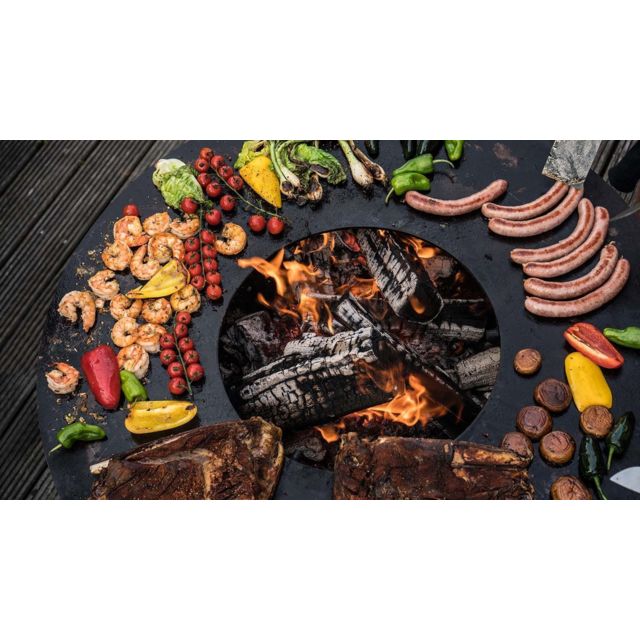 Points forts Remundi Barbecue brasero en acier Nero Hauteur 79 cm Diamètre 82 cm.