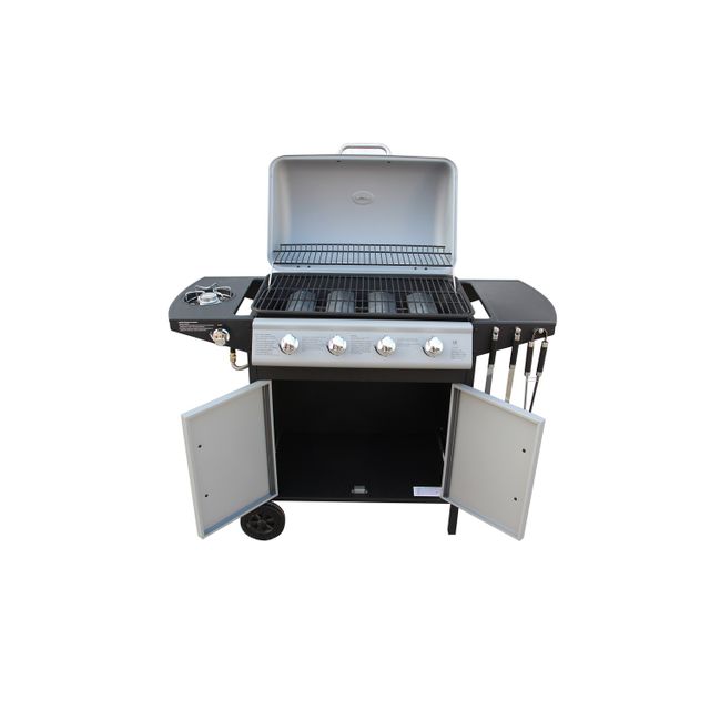 Points forts Concept Usine Branson – Barbecue à gaz 4 brûleurs + ustensiles inclus
