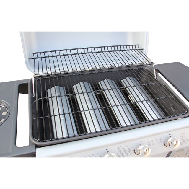 Description – Barbecues gaz – Concept Usine – Branson – Barbecue à gaz 4 brûleurs + ustensiles inclus