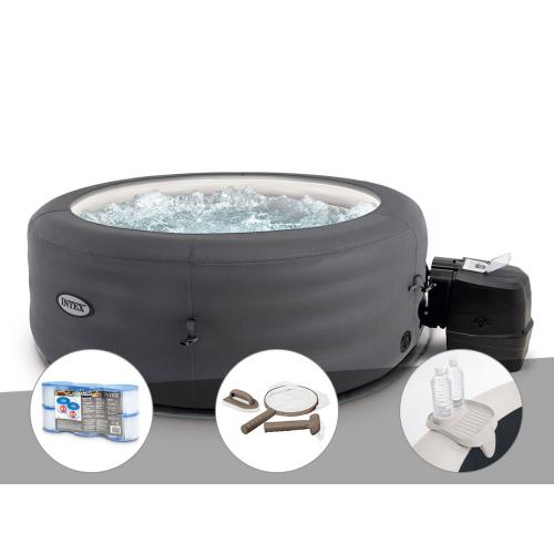 Kit spa gonflable Intex PureSpa Access rond Bulles 4 places + 6 filtres + Kit d’entretien + Porte-verre