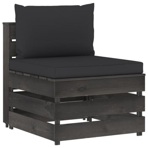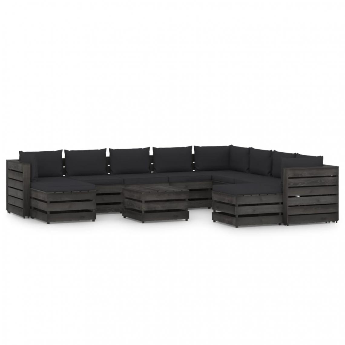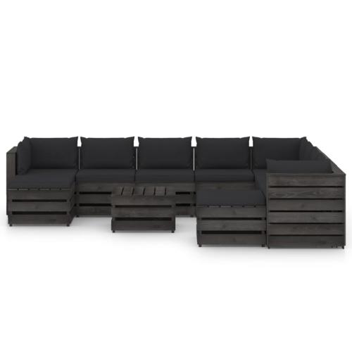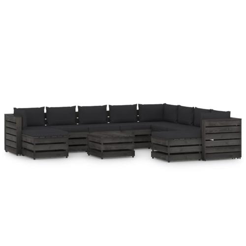 Salon de jardin 11 pcs avec coussins Bois imprégné de gris