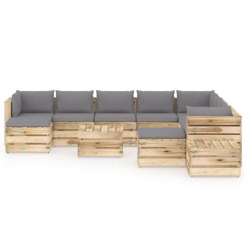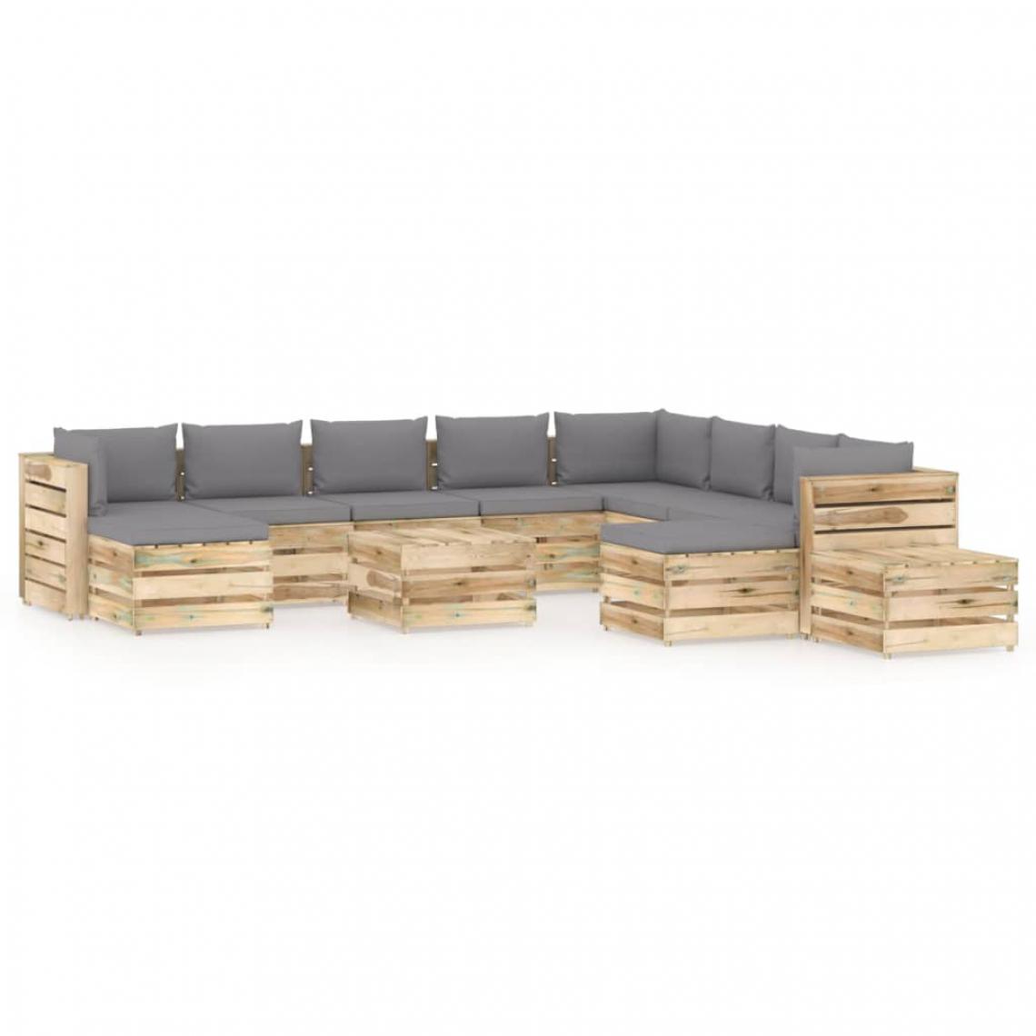 Salon de jardin 12 pcs avec coussins Bois imprégné de vert
