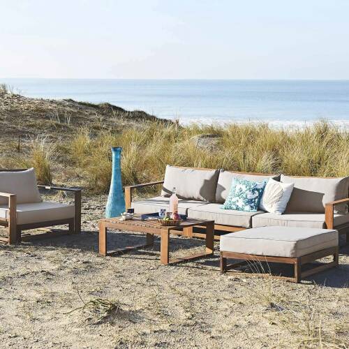 Salon de jardin au look très moderne et design avec sa structure en bois d’Acacia FSC.