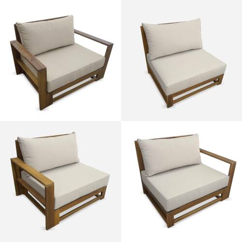 Description – Ensembles canapés et fauteuils – Alice’S Garden – Salon de jardin en bois 5 places – Mendoza – Coussins beiges, canapé, fauteuils et table basse en acacia