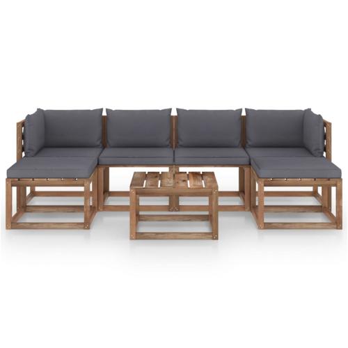 Salon palette de jardin 7 pcs et coussins Bois de pin imprégné
