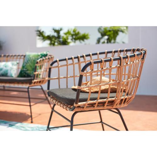 Description – Ensembles canapés et fauteuils – Concept Usine – Sevilla – Salon de jardin rotin & acier noir 4 places