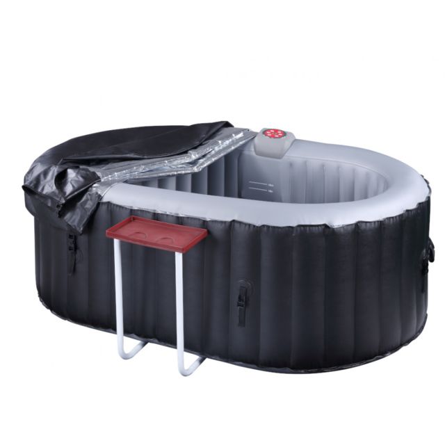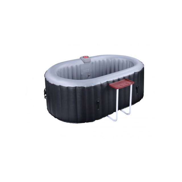 Description – Spa gonflable – Vente-Unique – SPA gonflable ovale 2 places – L190 x P120 x H65 cm – 90 buses d’air – Noir – B-LUCKY