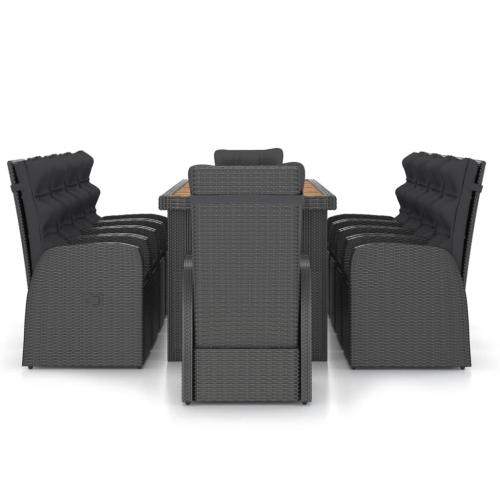 Cet ensemble de salle à manger d’extérieur, au design élégant et contemporain, est un supplément accrocheur à votre espace de vie extérieur. Cet ensemble de meubles de jardin est doté d’un cadre robuste en acier enduit de poudre, très stable et durable. La résine tressée rend cet ensemble de salle à manger facile à nettoyer, résistant à l’usure et adapté à une utilisation à l’extérieur. Le dessus de table est en bois d’acacia massif, un bois dur tropical, résistant aux intempéries et durable. Les chaises inclinables offrent le plus grand confort d’assise et un excellent soutien. Le dossier est facilement réglable selon votre désir en utilisant le bouton au côté. Les chaises avec repose-pied fournissent aussi du confort accru. De plus, les coussins d’assise et de dossier épais et moelleux sont également très confortables. Les housses de coussin en polyester nécessitant peu d’entretien peuvent être facilement retirées et lavées. Remarque : nous vous recommandons de couvrir l’ensemble pendant la pluie, la neige et le gel pour sa longue durée de vie.Les commandes sont livrées à toutes adresses, en France continentale. Nous ne livrons pas la Corse et. vidaXL ne livre pas les DOM-TOM.